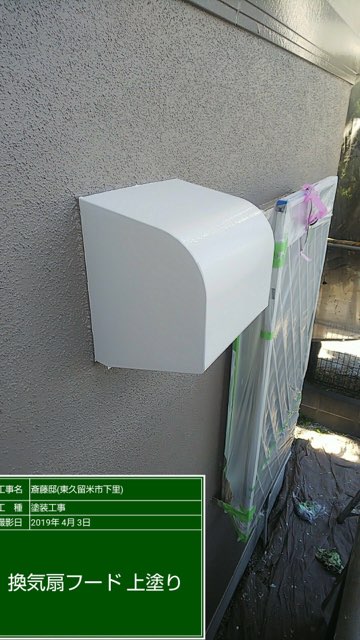 破風板、帯、柱、雨樋等の補修及び上塗り塗装 マイルドシリコン 色番号SR414