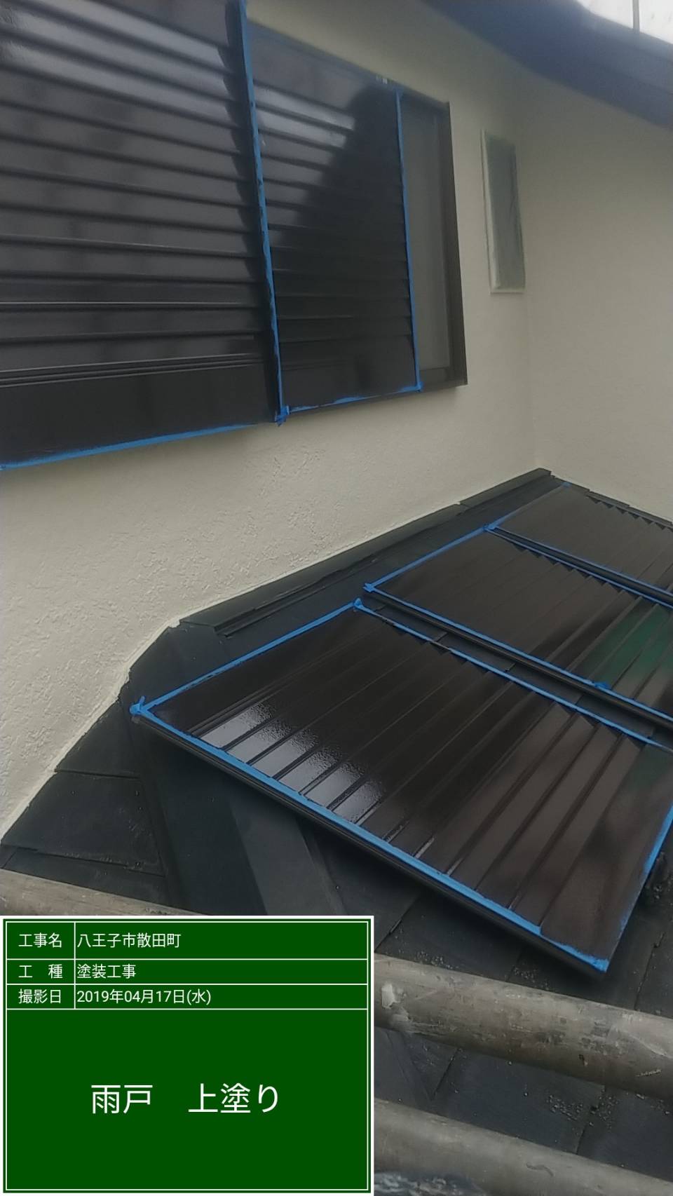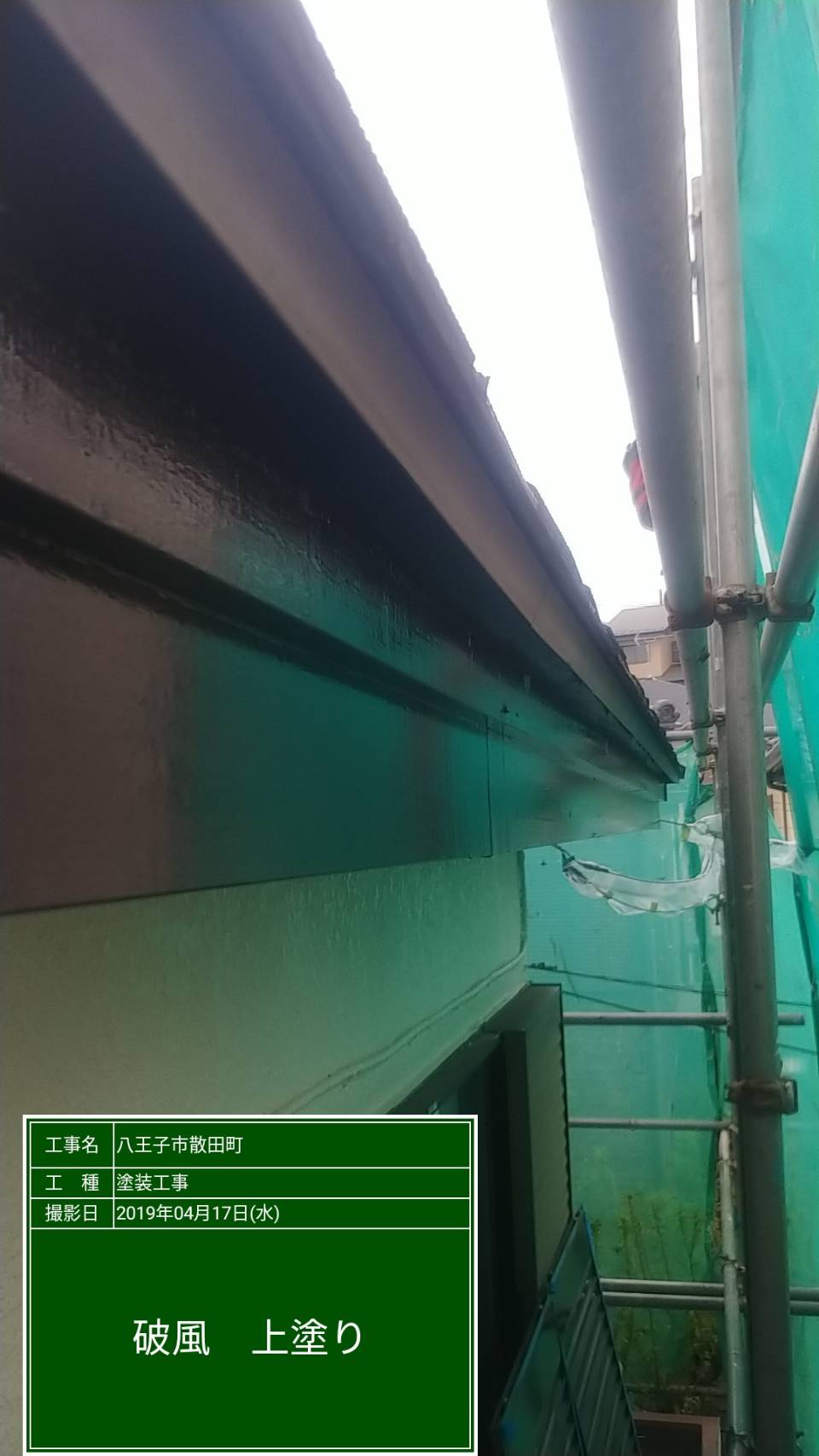 破風板、雨戸、雨樋、トタン、その他木部 マイルドシリコン 茶系色にて塗装。