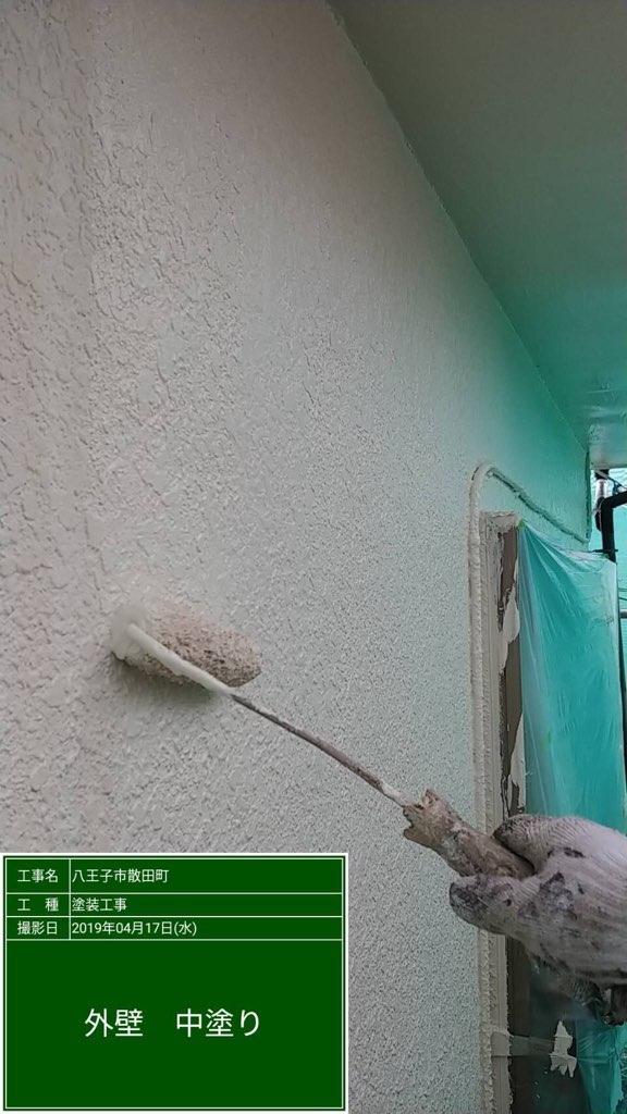 外壁 中塗り、上塗り セラミクリーンSR175にて塗装。