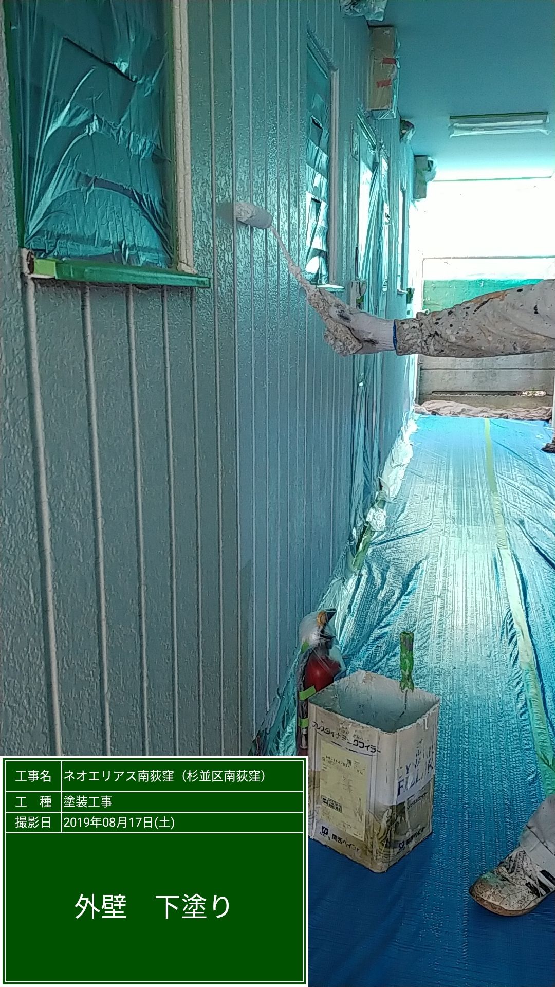 外壁下塗りフィーラー塗装 1面のみ塗装。