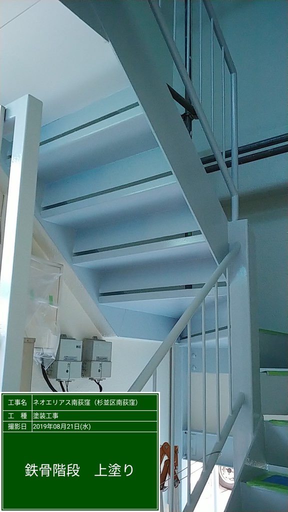 破風板、鉄骨階段、PS、玄関ドア枠等の塗装 マイルドシリコンにて。