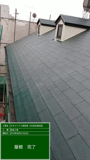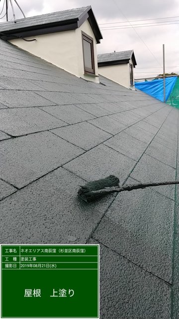 シングル屋根の上塗り塗装 シリコンベスト モスグリーン色。