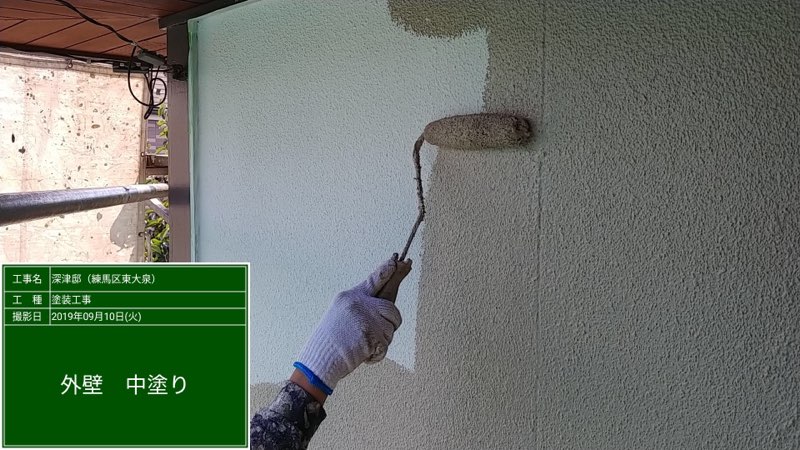 下塗フィーラー塗装。中塗り塗装 セラミクリーンSR108にて。