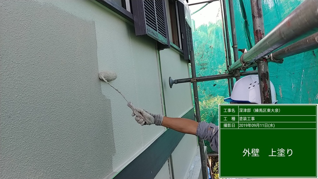 外壁 上塗り塗装 セラミクリーンSR108にて塗装。