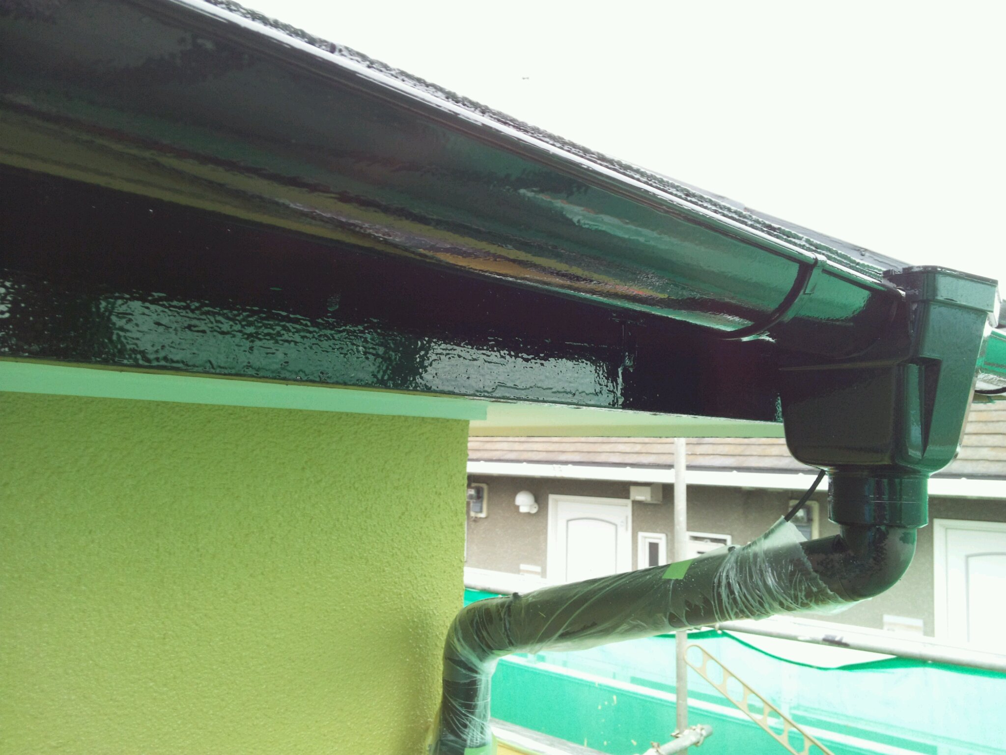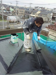 昨日の雨も昼には止んだので、お陰さまで屋根にも雨が残っておらず塗装する事が出来、助かりました。