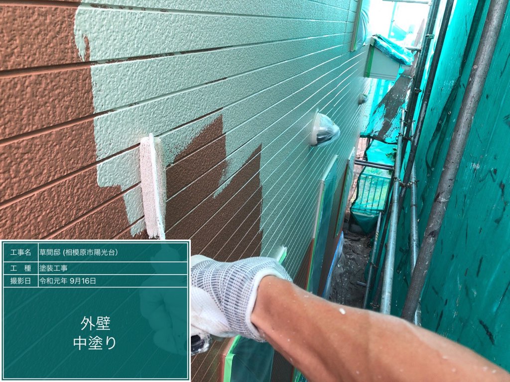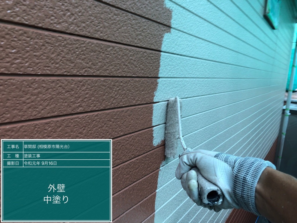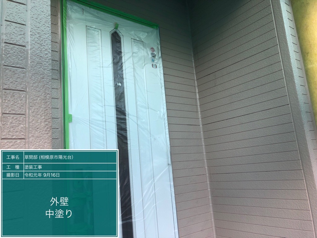 外壁 中塗り塗装 セラミシリコン色番号SR168にて塗装。IMG_8912IMG_8911IMG_8909