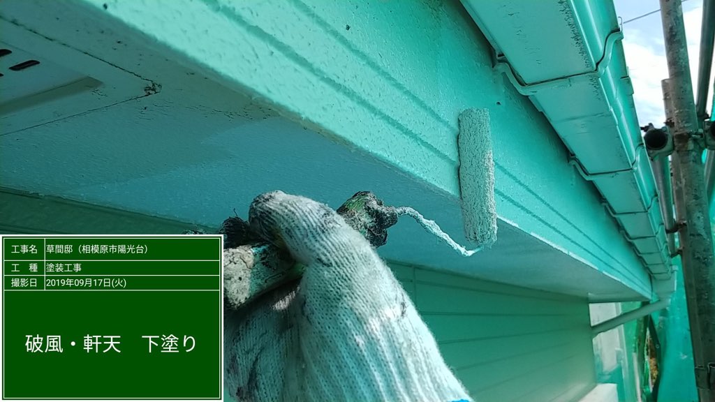 破風、軒天 塗装 マイルドシリコン アイボリー色