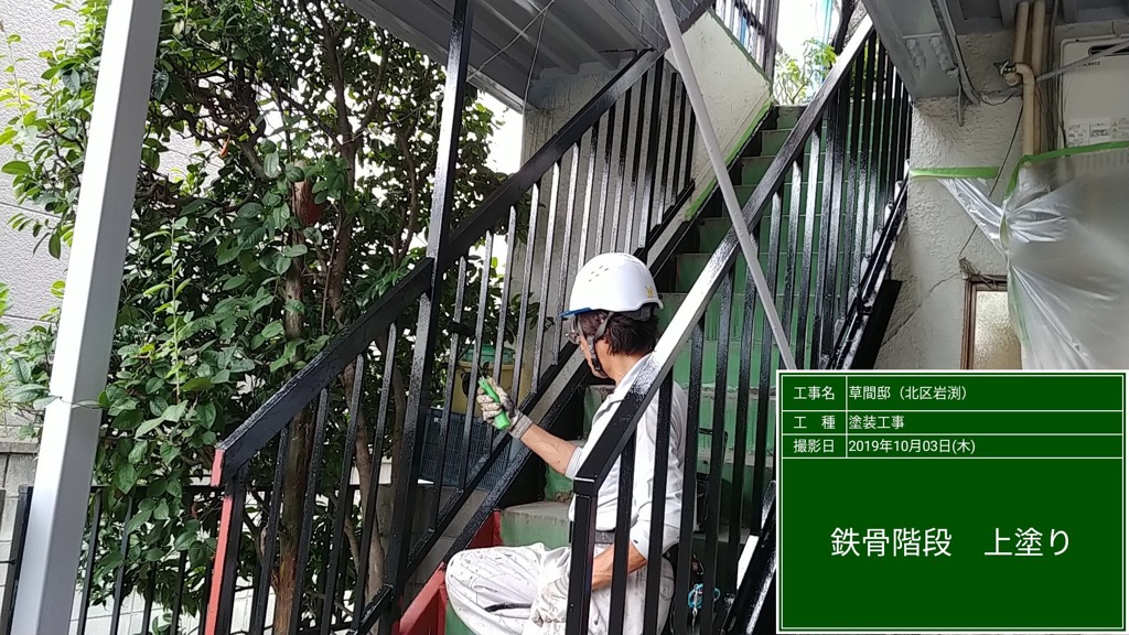 階段部の上塗り塗装 マイルドシリコン黒色。
