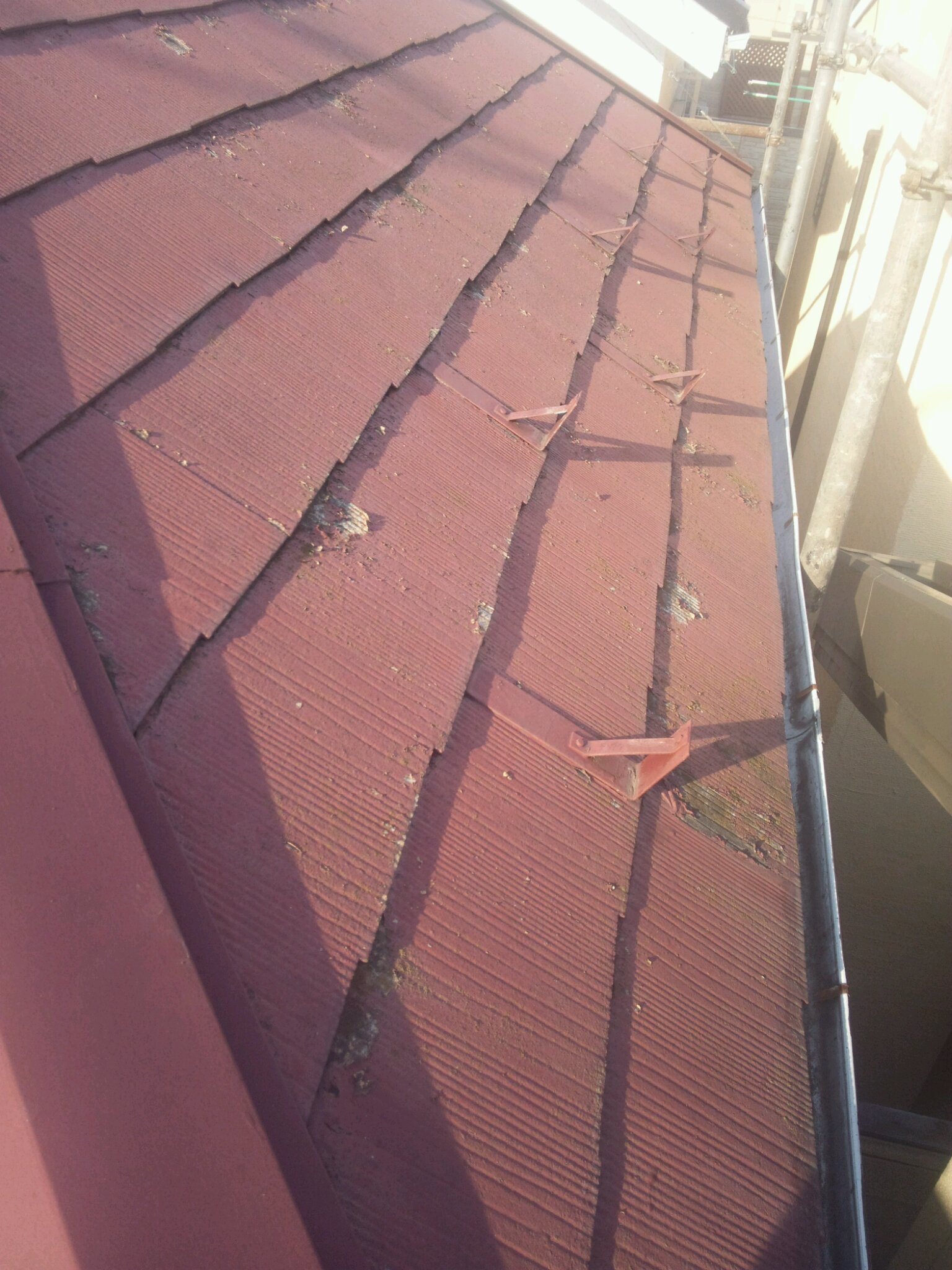 上の写真のように1棟のお客様はコロニアル大屋根の劣化とクラックが多く見られます。
