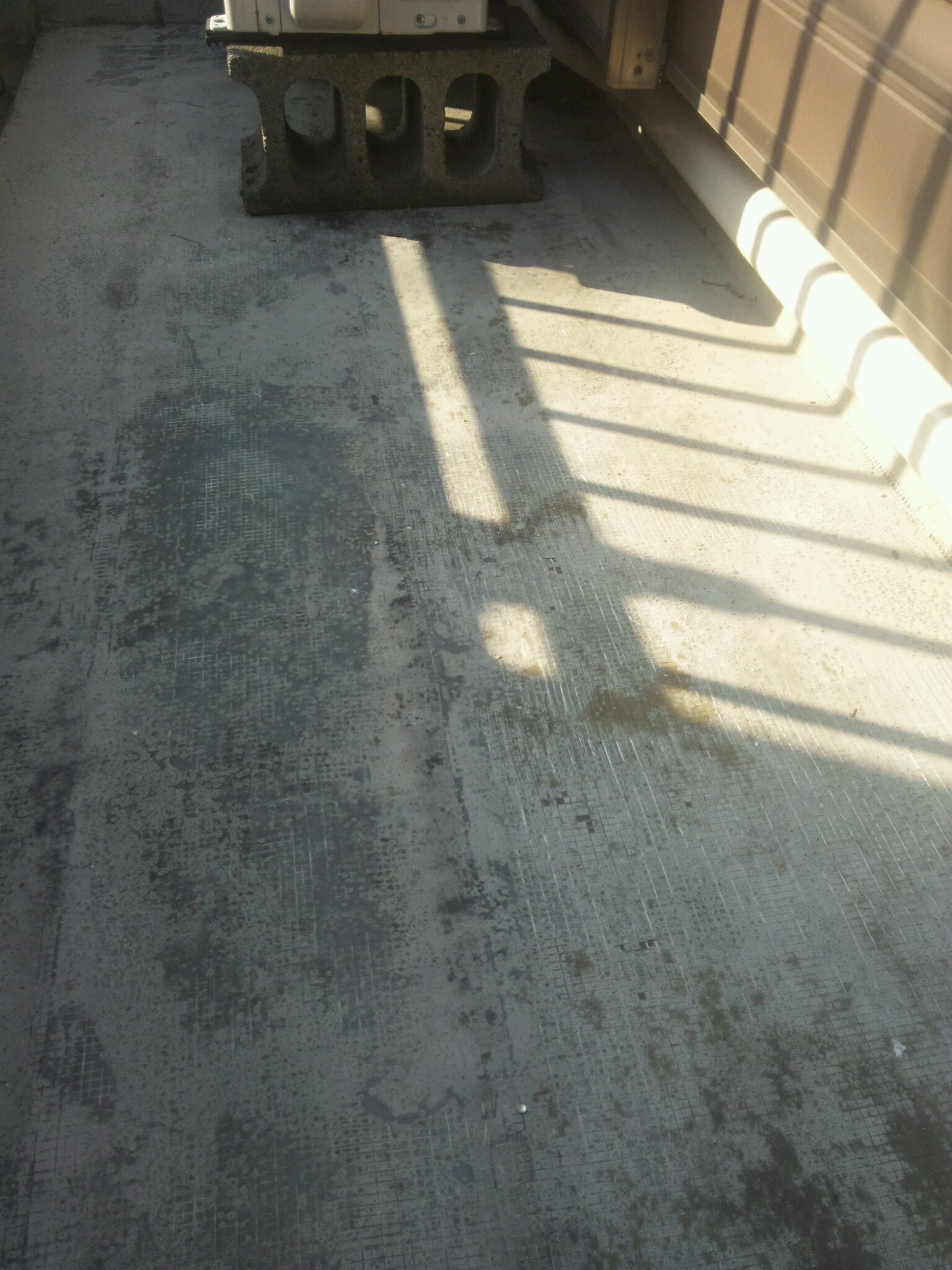 もう一つのお客様はベランダの防水が劣化と前回施工がずさんなため、かなり劣悪な防水床の状態です。雨漏れはしていないようですが、おそらくこの状態では時間の問題だったと思われます。