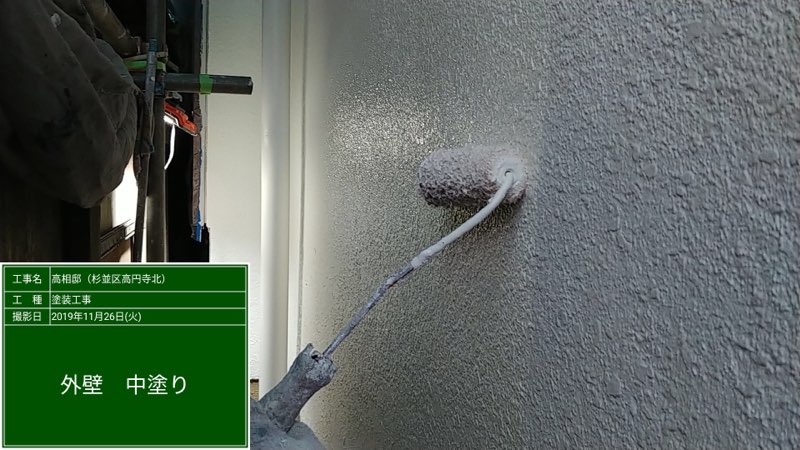 外壁 中塗り及び上塗り塗装 パーフェクトトップND503にて施工。