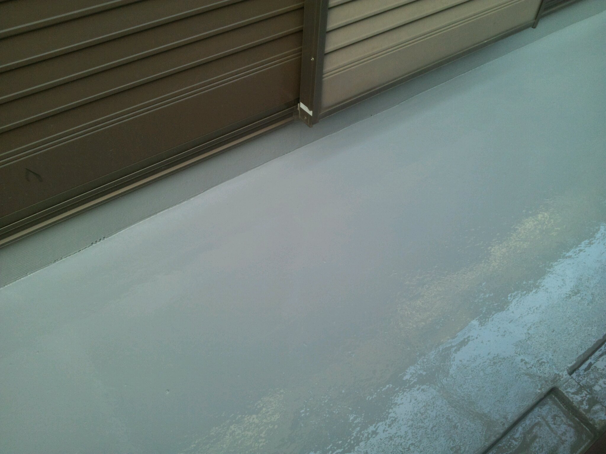 ベランダの床防水の中塗り 主剤の1回目及び2回目 の塗装をまず朝、そして昼過ぎと施工いたしました。