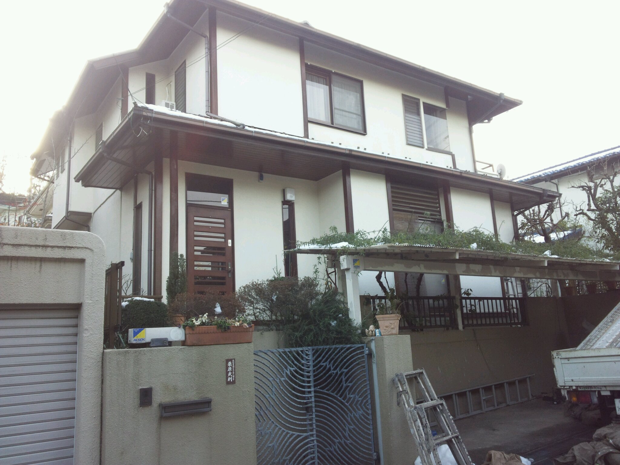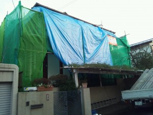 その後、高圧洗浄。そして明日はまた雪の予報なので、対策としてブルーシートを上からかぶせていきます。