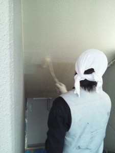 ベランダの床面の塗装。まずはけれんと掃除。その後プライマーを2回塗りました。