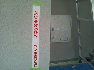 昨日のお約束通り、塗りたて注意のテープを貼らせていただきました。