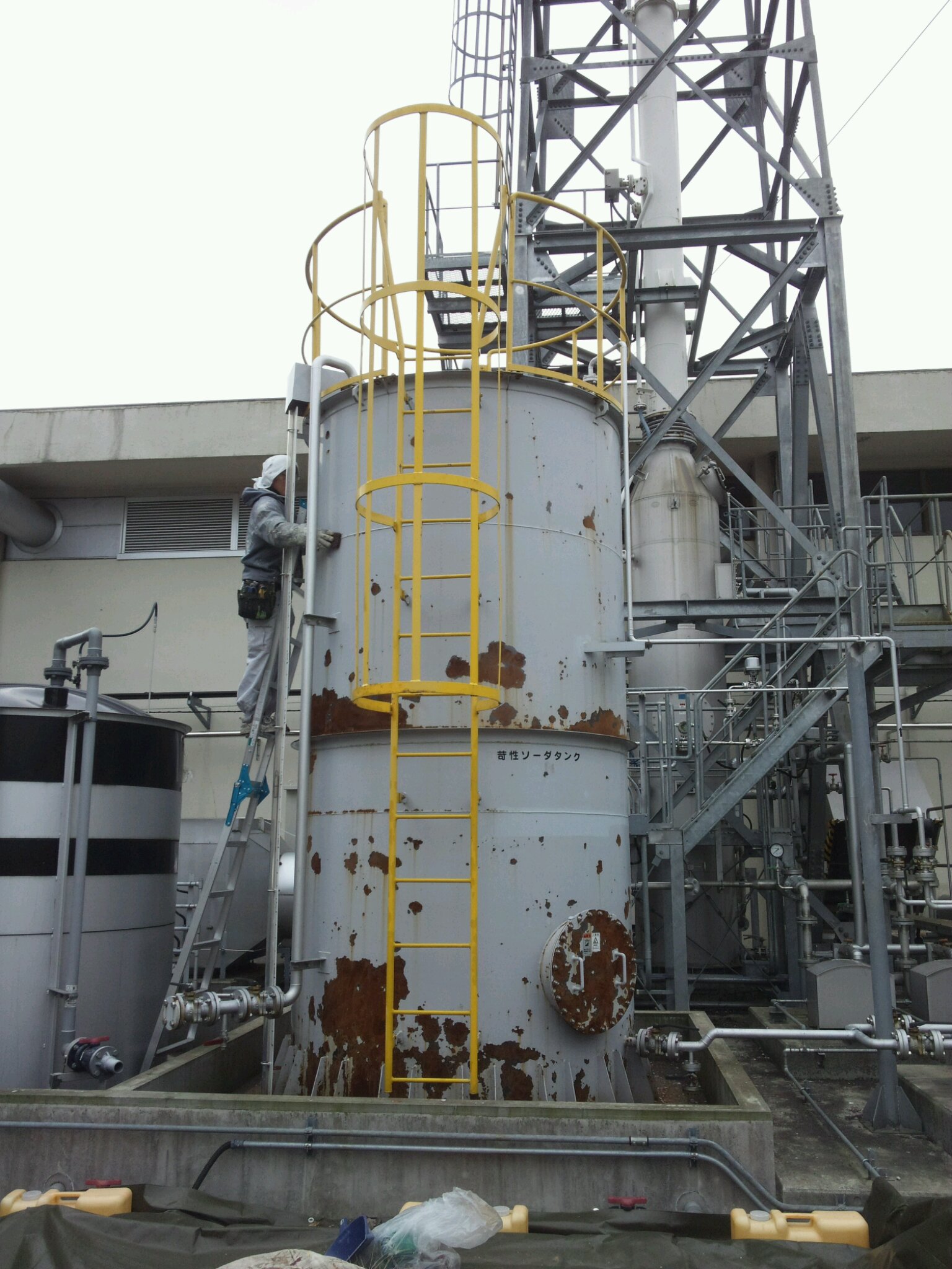 そちらの苛性ソーダが入ったプラントの塗装が今回の作業です。