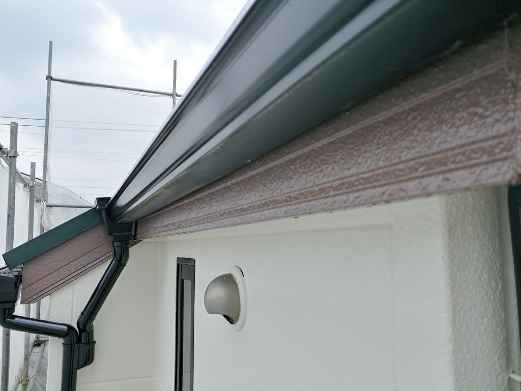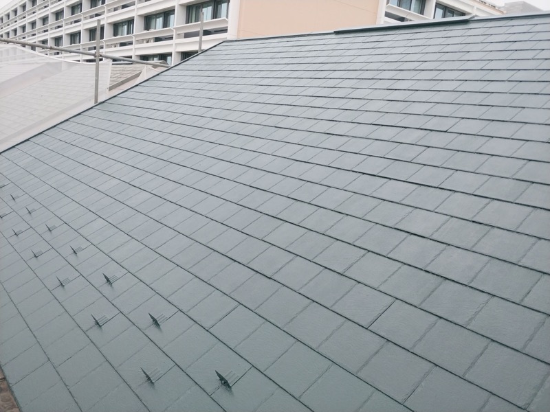 コロニアル屋根 上塗り シリコンベスト モスグリーン色塗装。