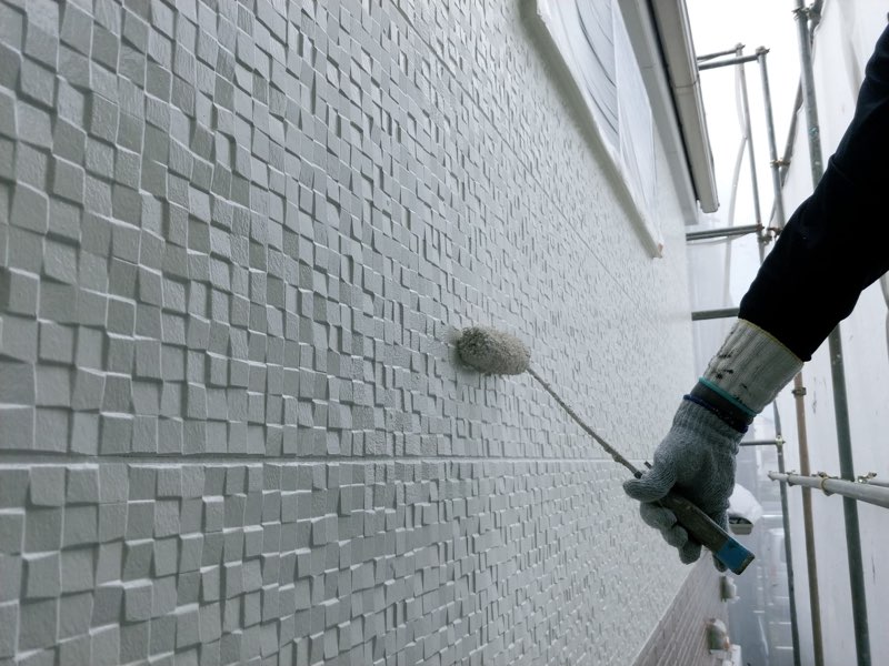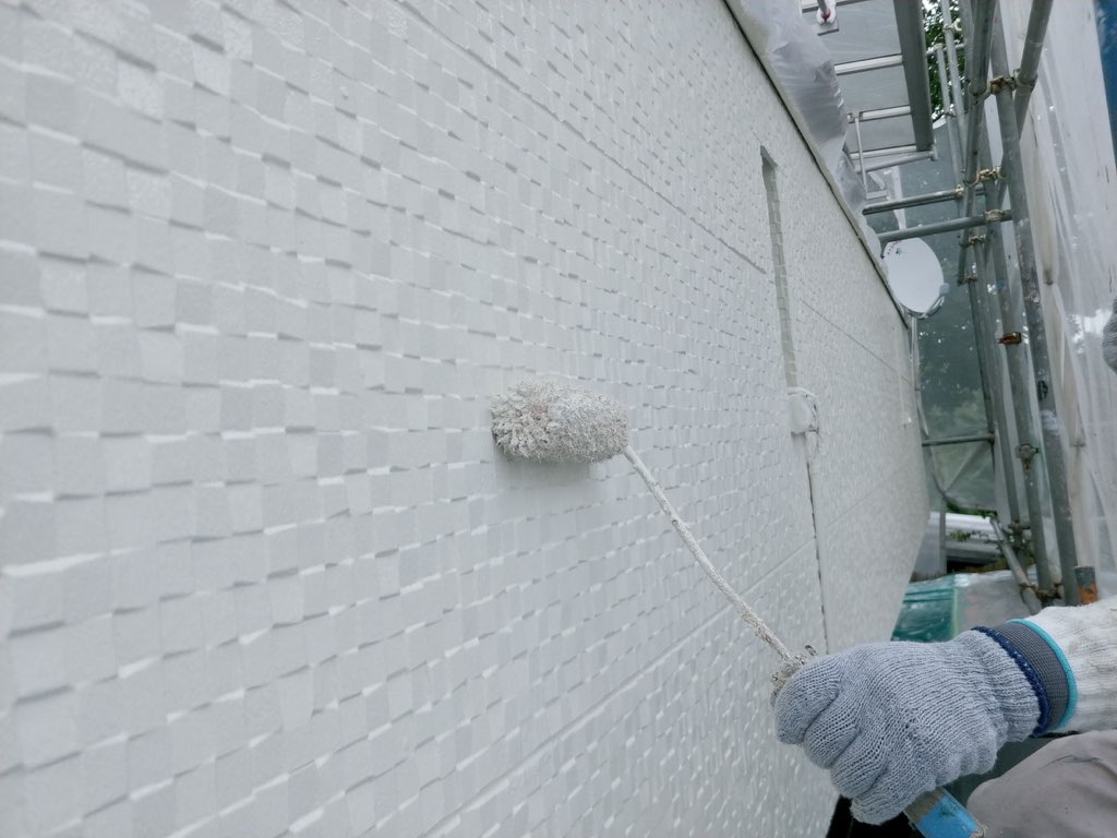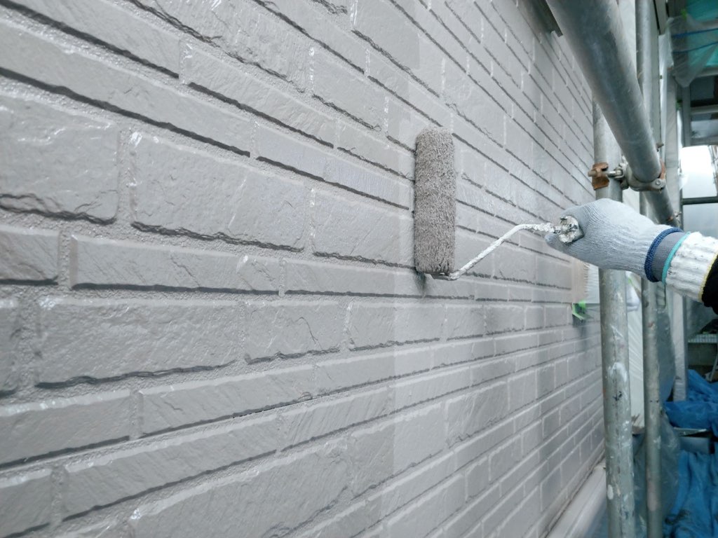 外壁 上部 上塗り パーフェクトトップND105塗装。