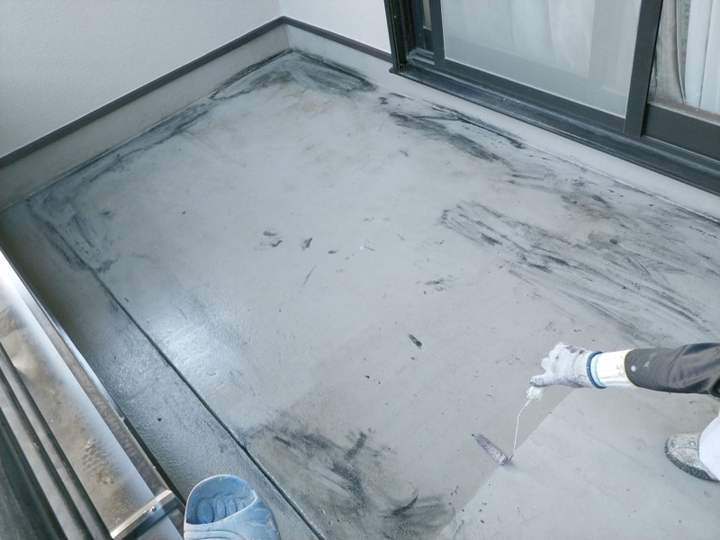 ベランダ床 けれん作業、清掃 及びプライマー塗装。