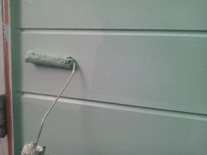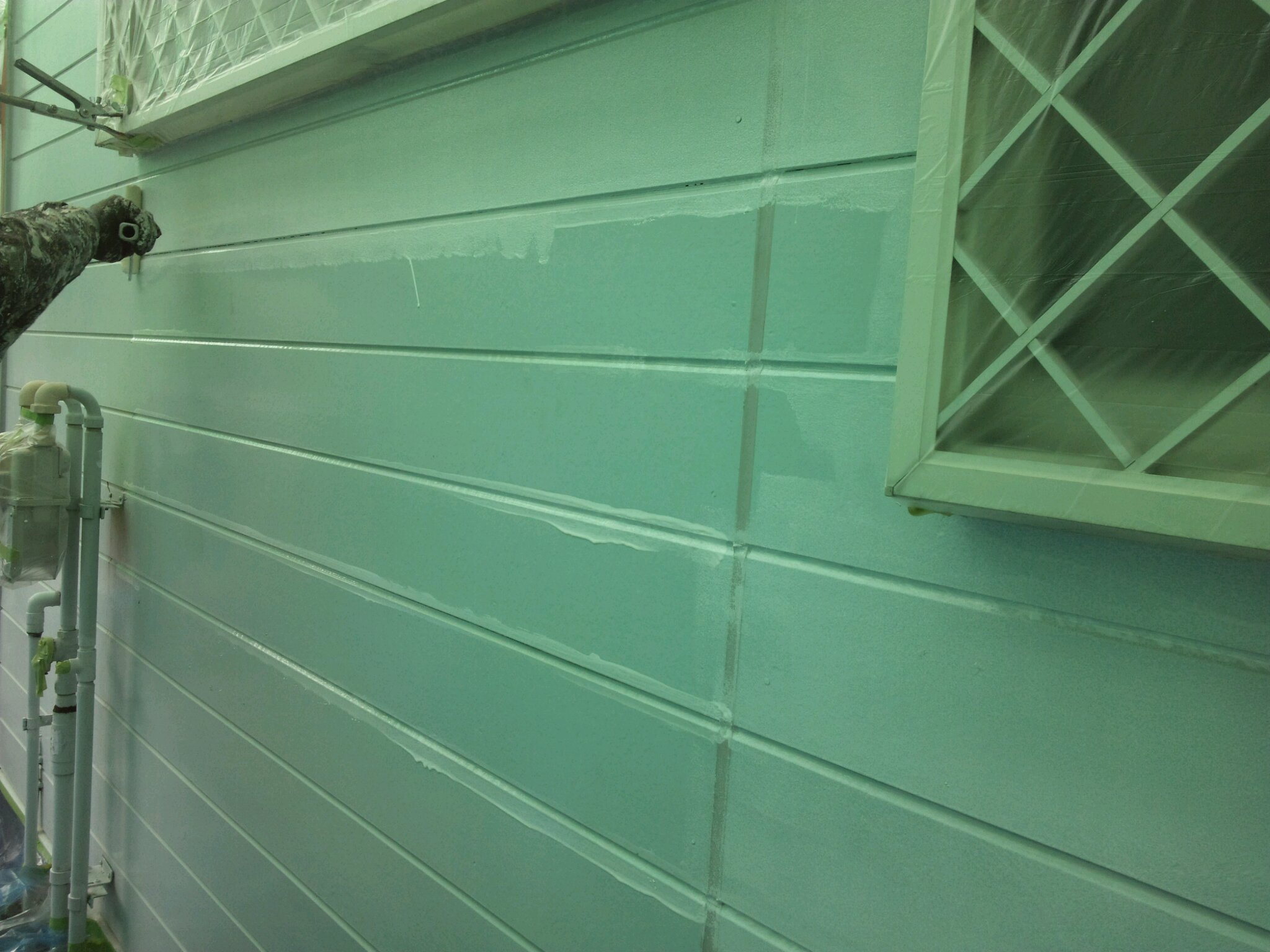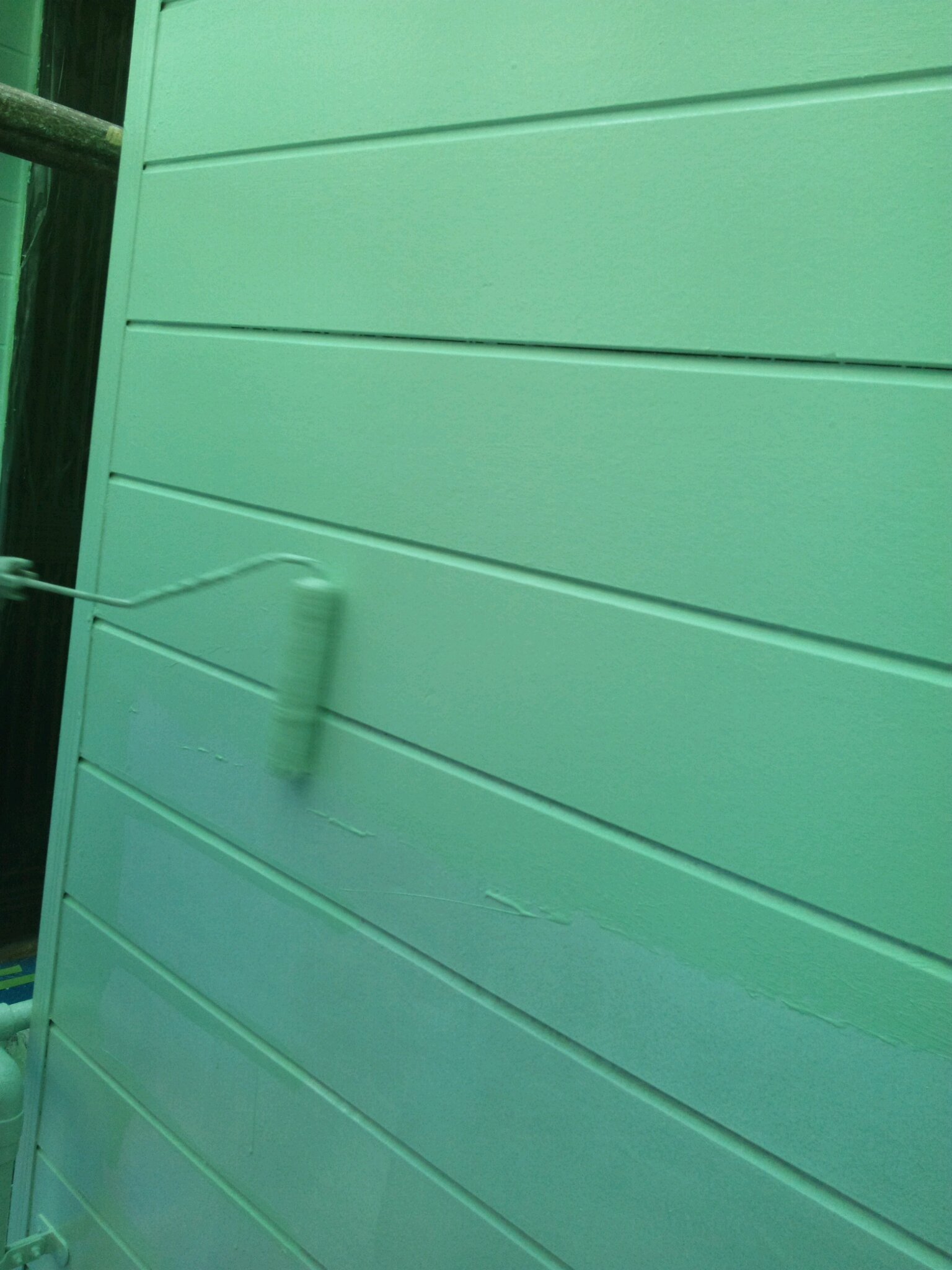 まずは養生。サイディングの下塗り シーラーの塗装。