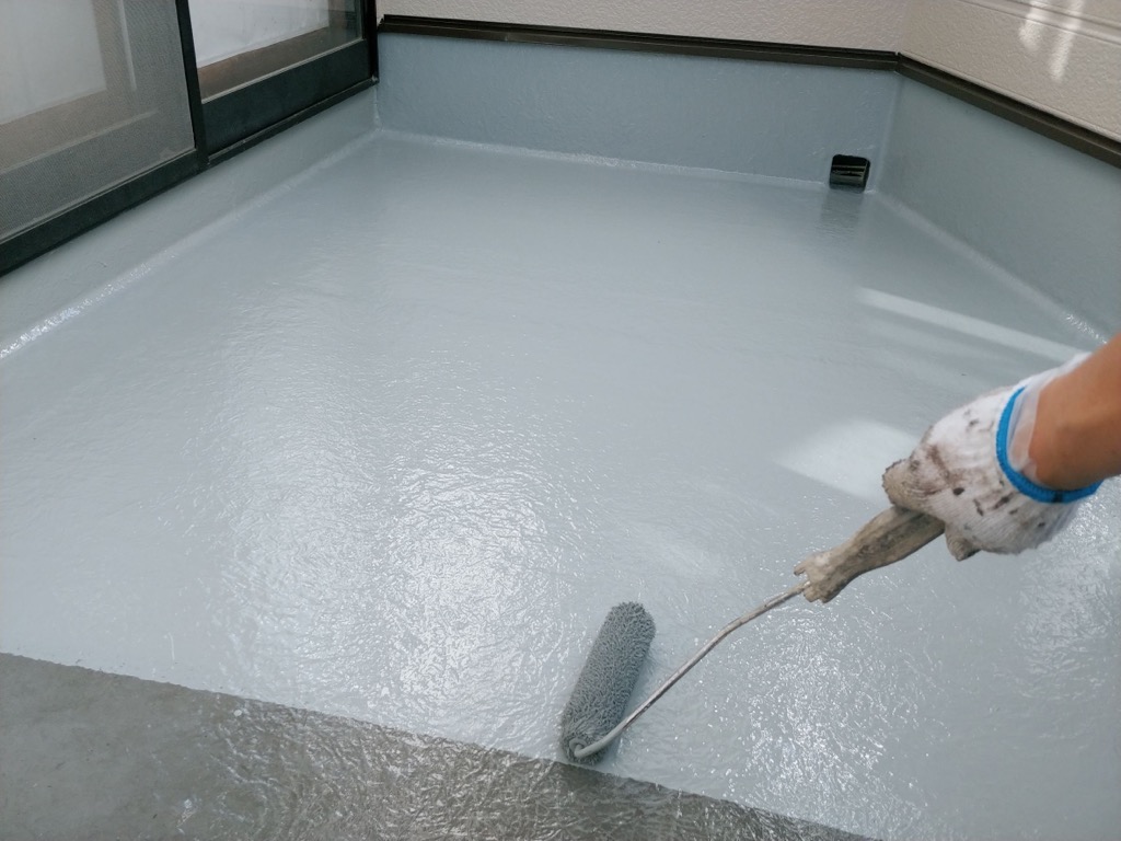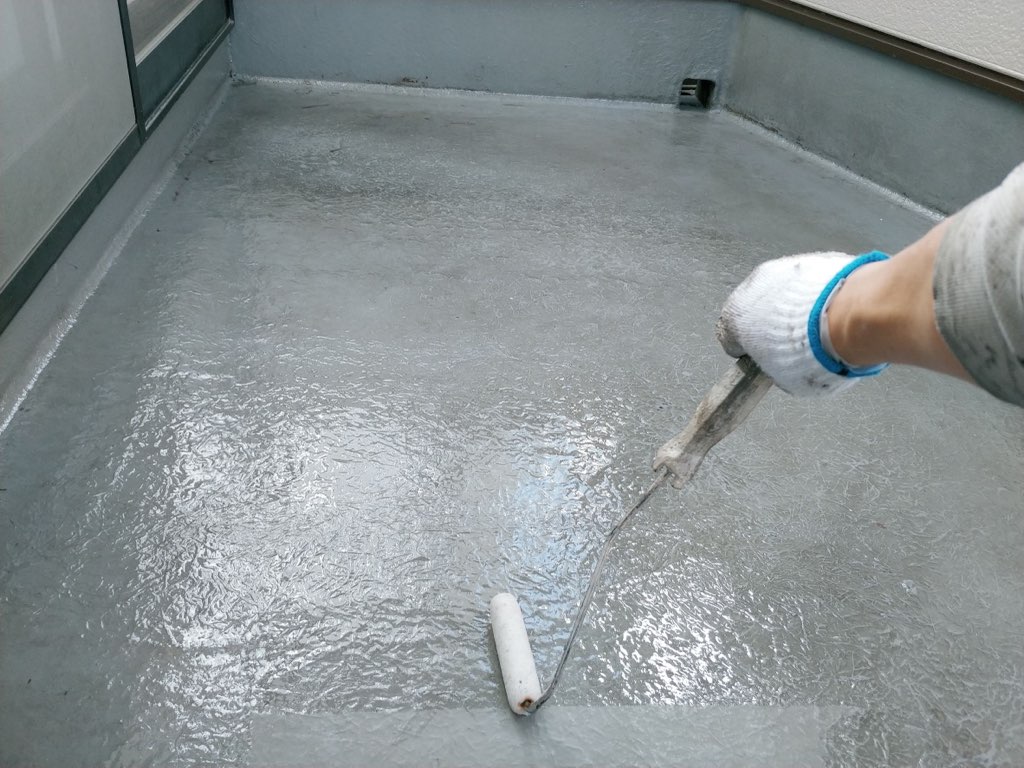 ベランダ床塗装 プライマー塗布、トップコート塗装
