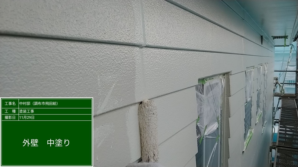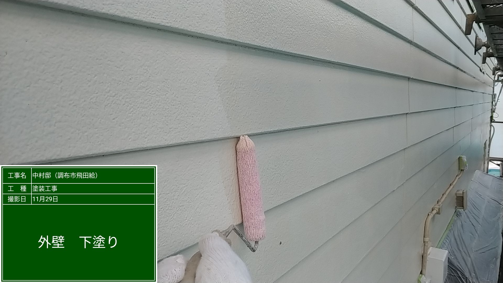 外壁 下塗りシーラー、中塗り塗装パーフェクトトップND111。