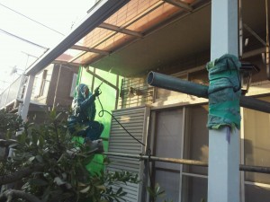 さらには高圧洗浄と作業しまして、初日の工事はこれにて終了させていただきます。