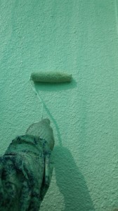 外壁の上塗り(仕上げ塗り)。