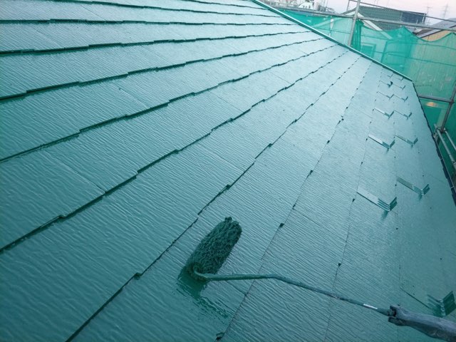 コロニアル屋根 中塗り及び上塗り ヤネフレッシュ ディープグリーン色