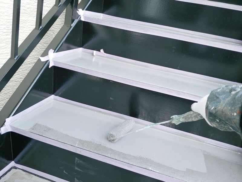 共用通路及び階段 上塗り ファインウレタン黒色塗装