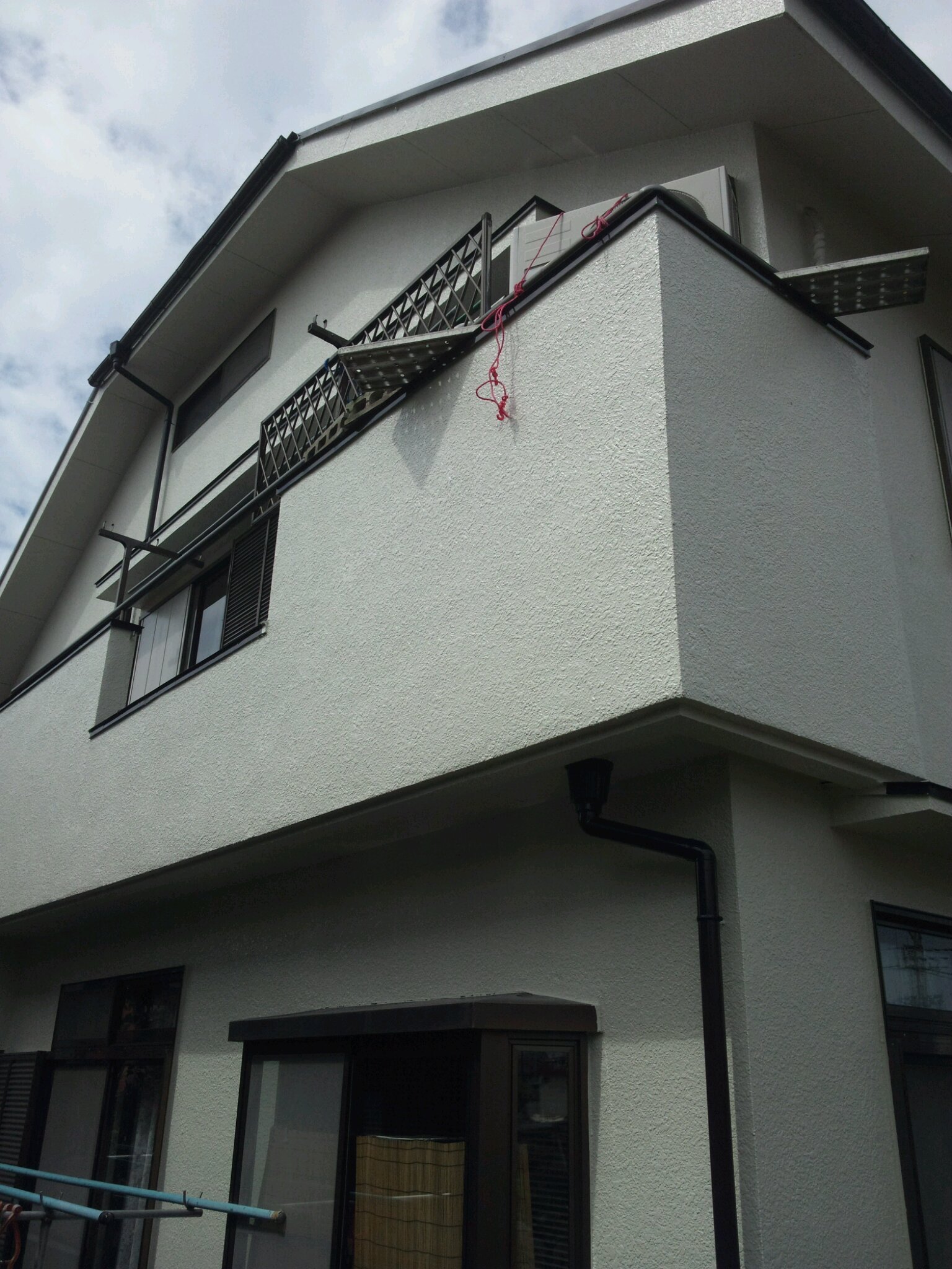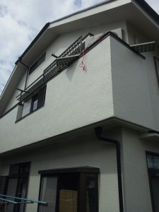 続いてベランダの床防水を塗りながら、足場の撤去です。