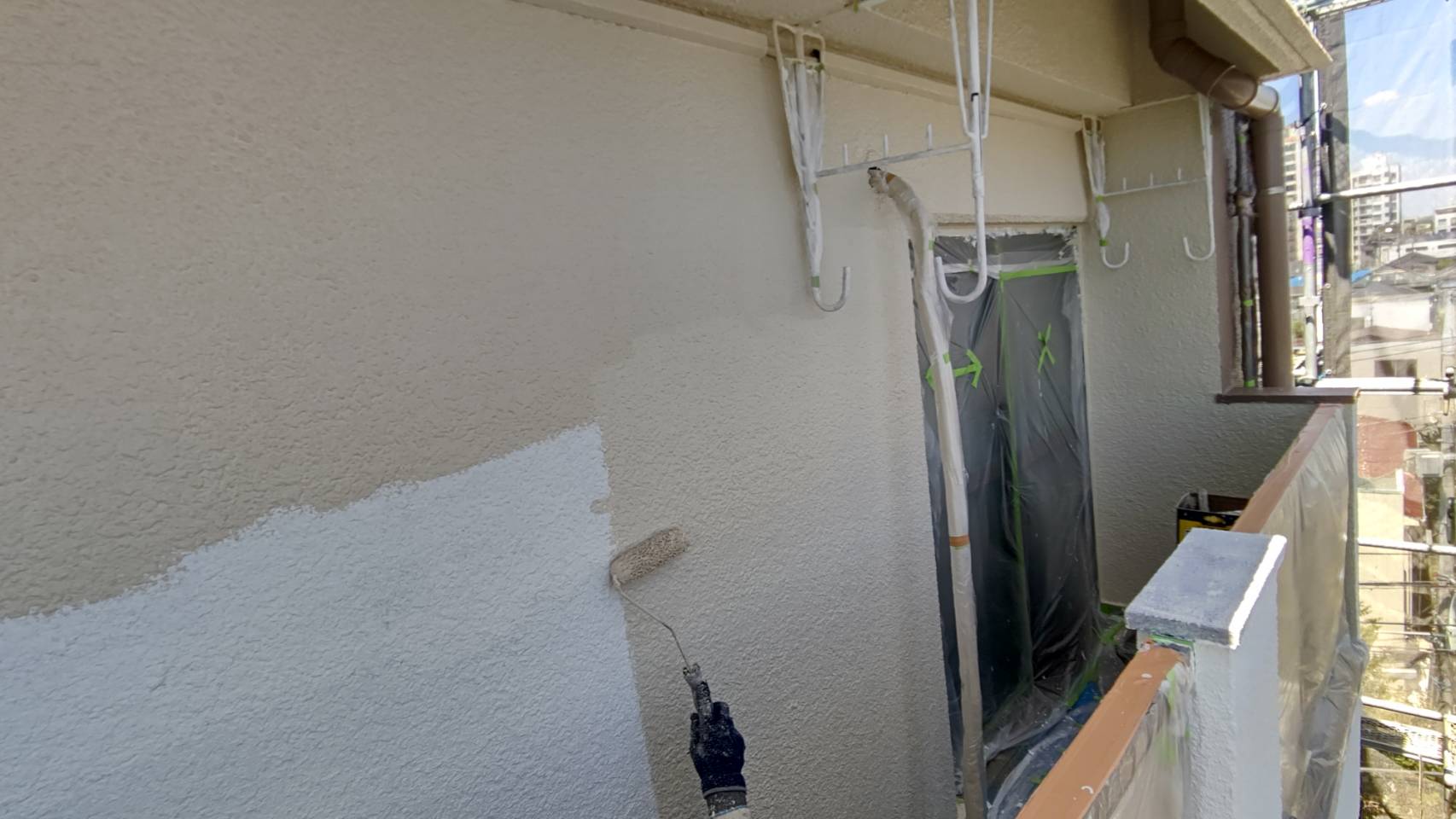 ベランダ面 中塗り塗装 パーフェクトトップND342及びND108IMG_9575IMG_9576IMG_9577