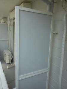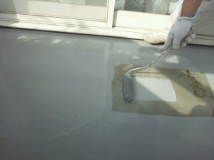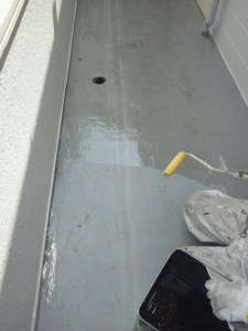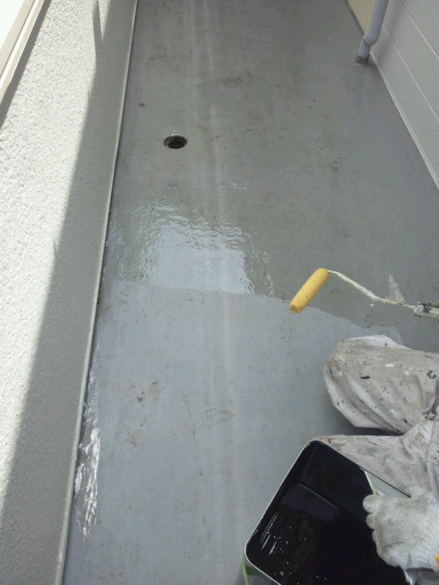 パーテーションの塗装と各ベランダと共用廊下の防水床。