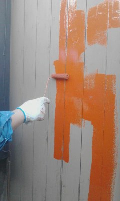 続いて、鉄部のサビ止めと、木部の劣化部分タッチアップと作業を進めて本日は終了となりました。