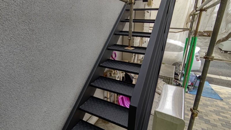 鉄骨階段 黒色さび止め塗装。