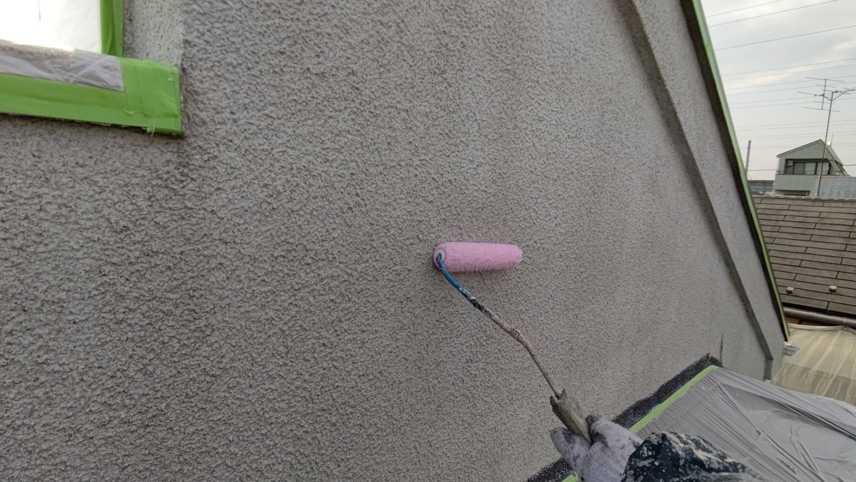 外壁の既存塗装がセラミックの為下塗りにシーラー塗装をしました。