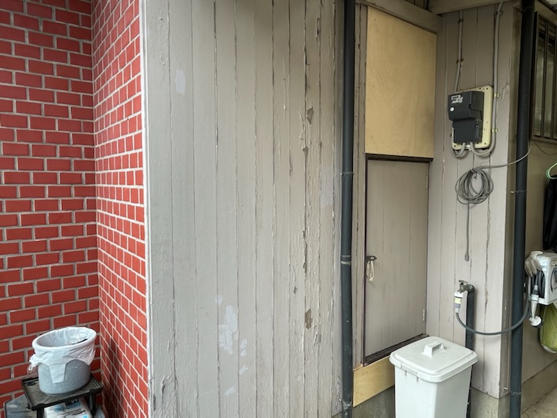 外壁は木製の下見板 ウレタン塗装の既存色仕上げ。