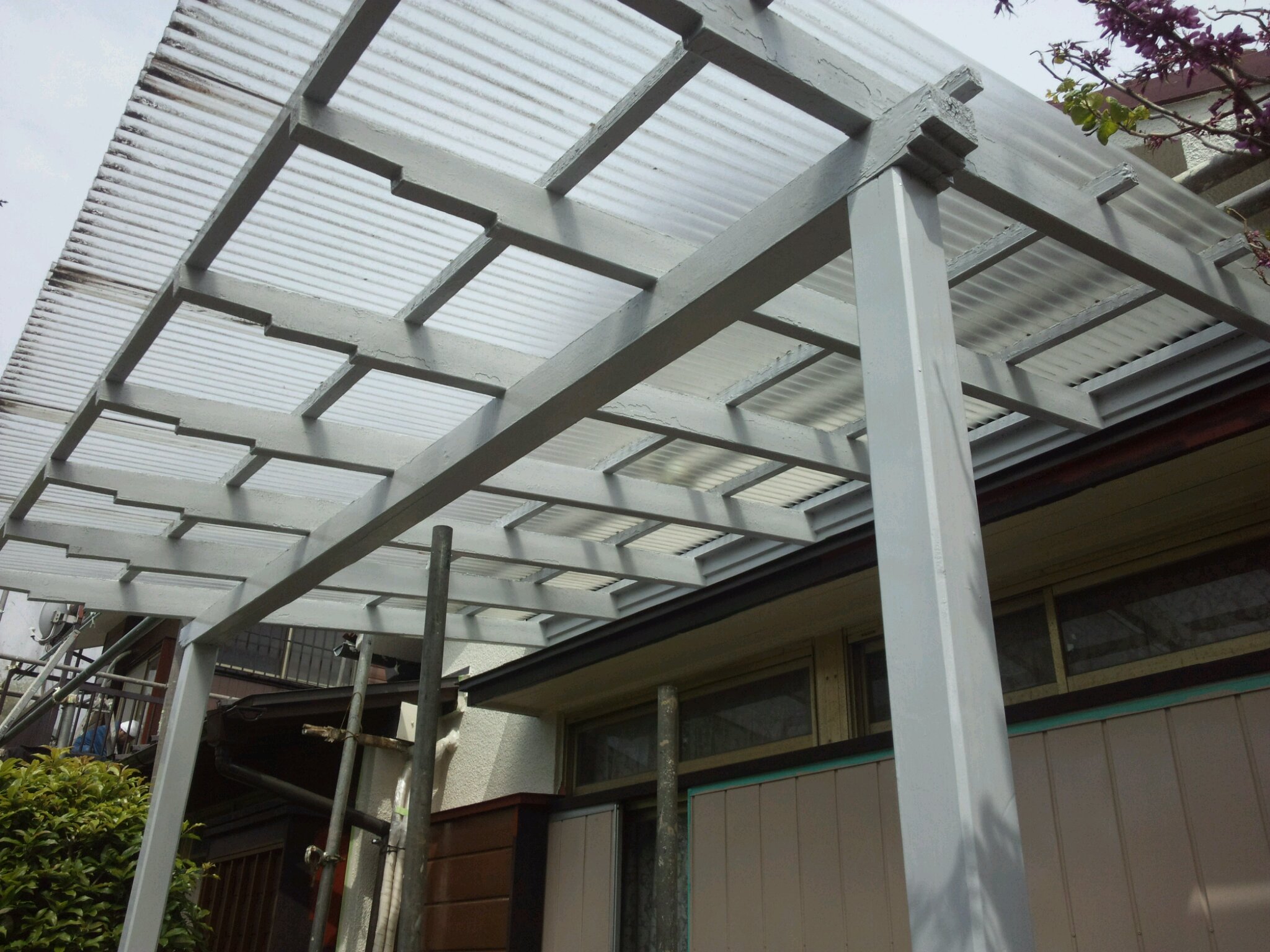 庭先にあるパーゴラの塗装。木そのものは傷んでおりませんが、塗装が激しく劣化しておりました。