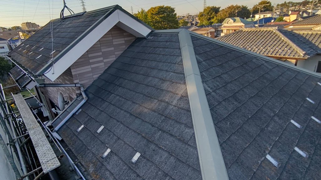 今回は意匠サイディングとコロニアル屋根塗替えです。
