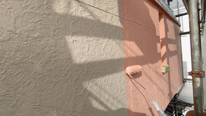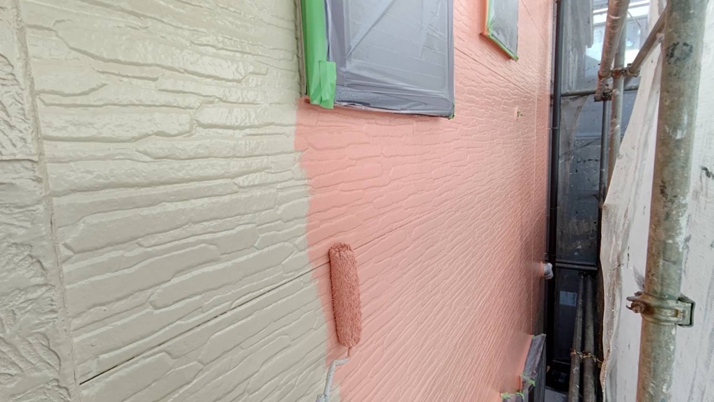 外壁 中塗り及び上塗り塗装。