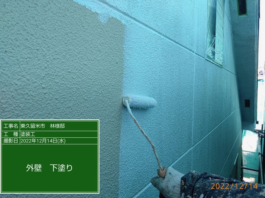 外壁 中塗り及び上塗り塗装。