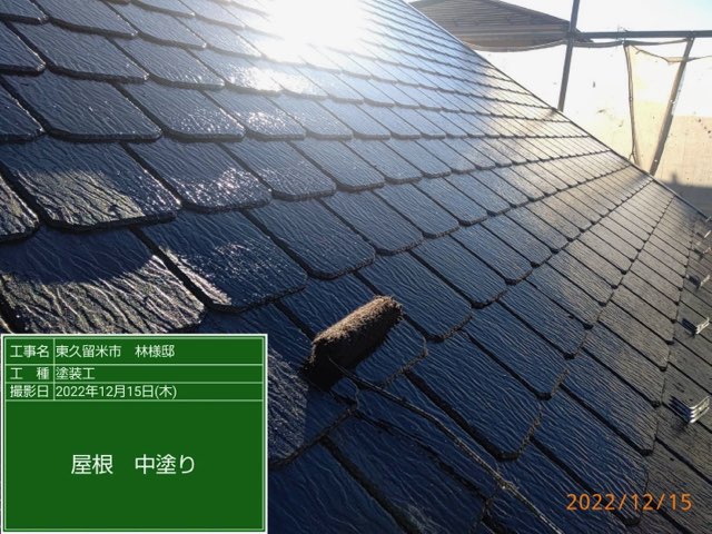 コロニアル屋根 中塗り塗装。