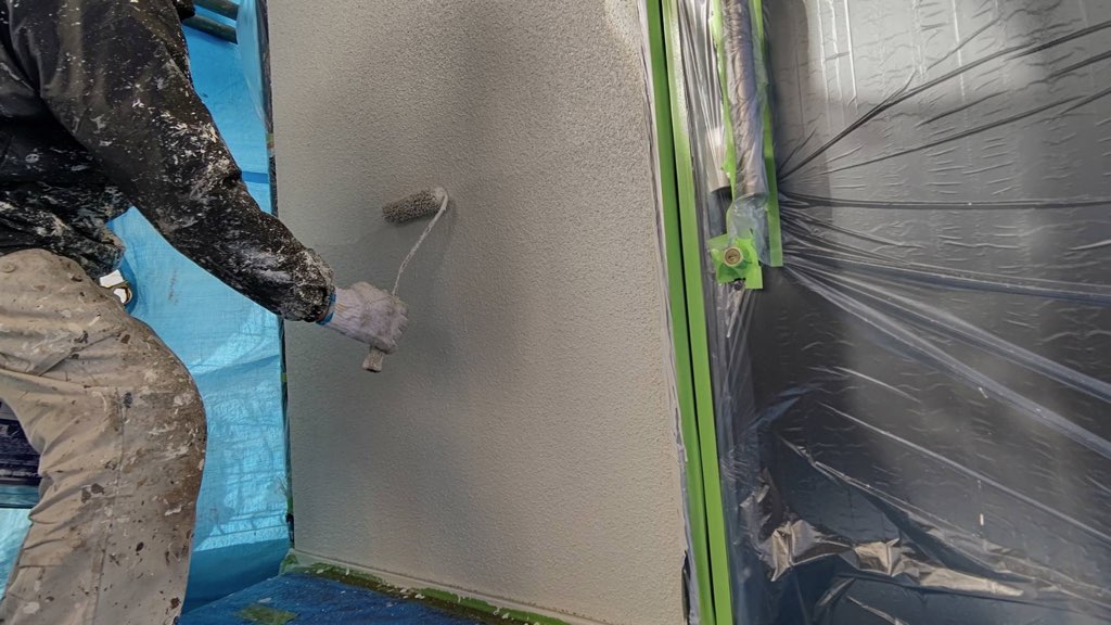 外壁 中塗り及び上塗り塗装。