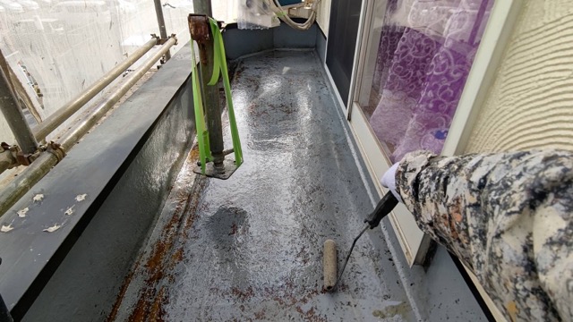 ベランダ防水部 プライマー塗装、トップコート塗装。