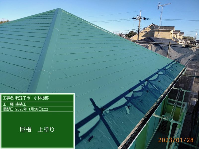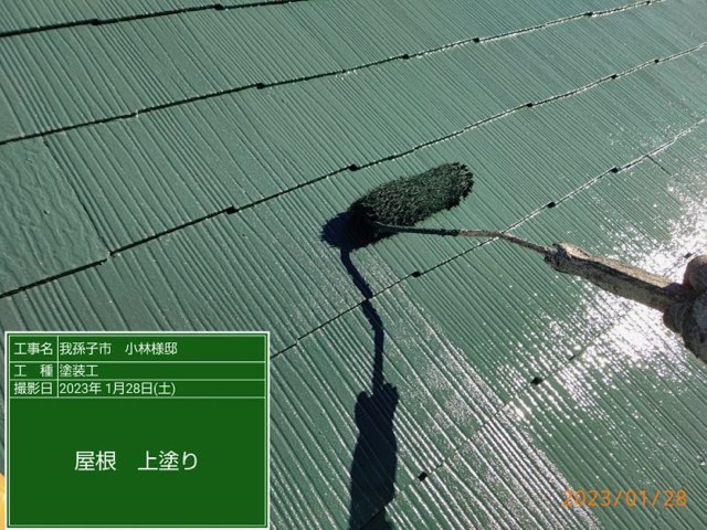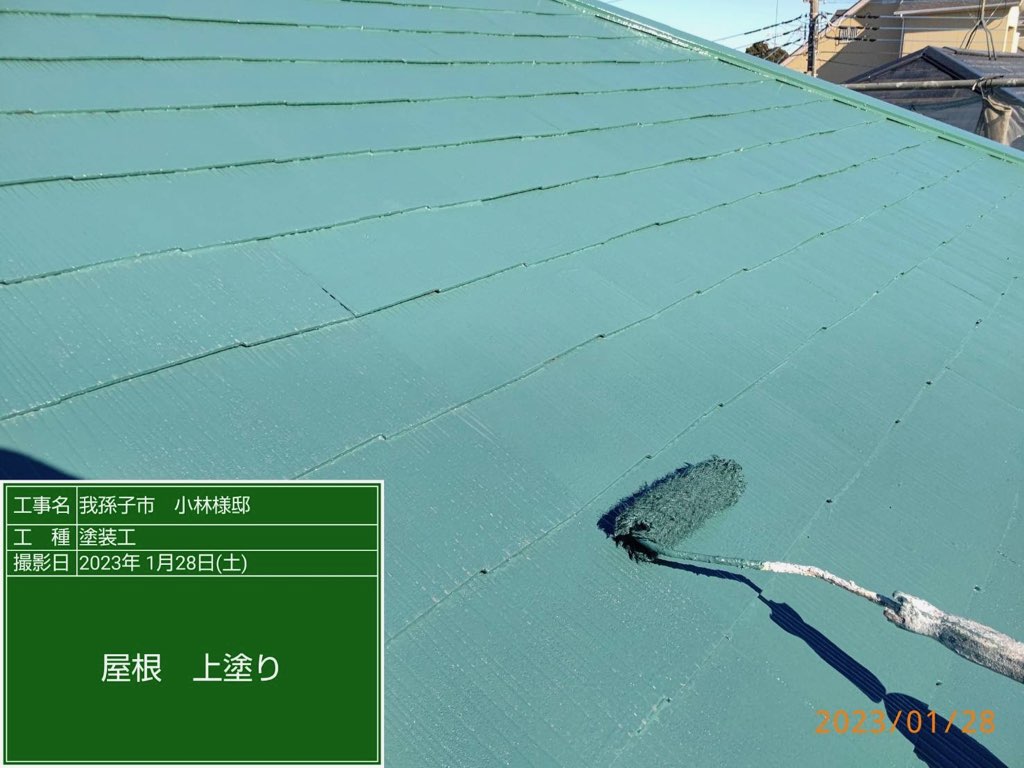 コロニアル屋根 上塗り塗装。