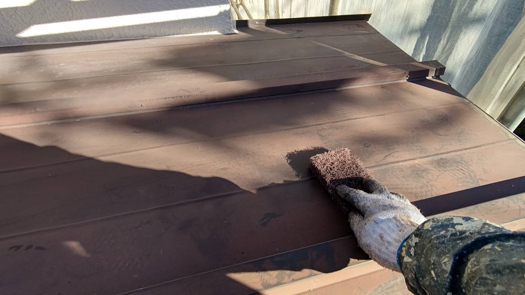 トタン下屋根 けれん作業及びさび止め塗装。