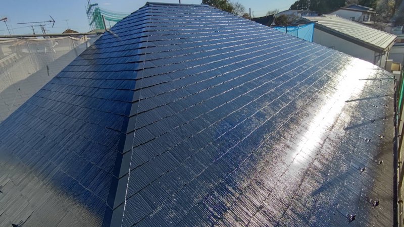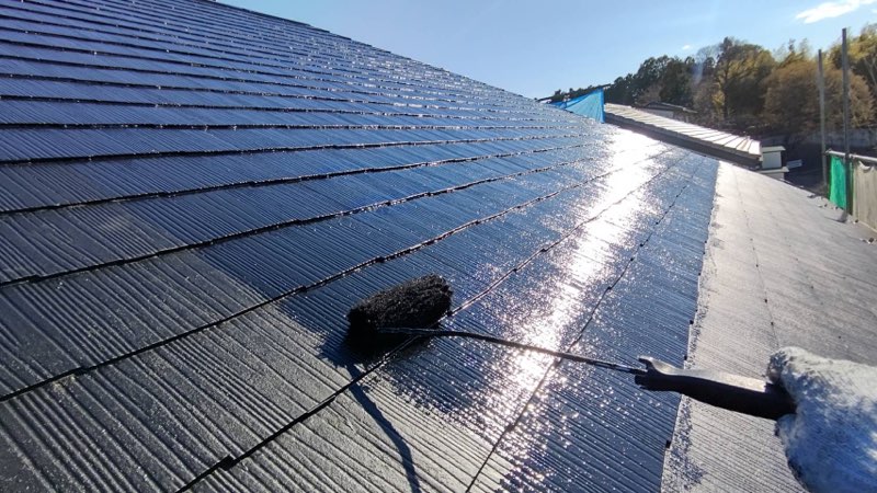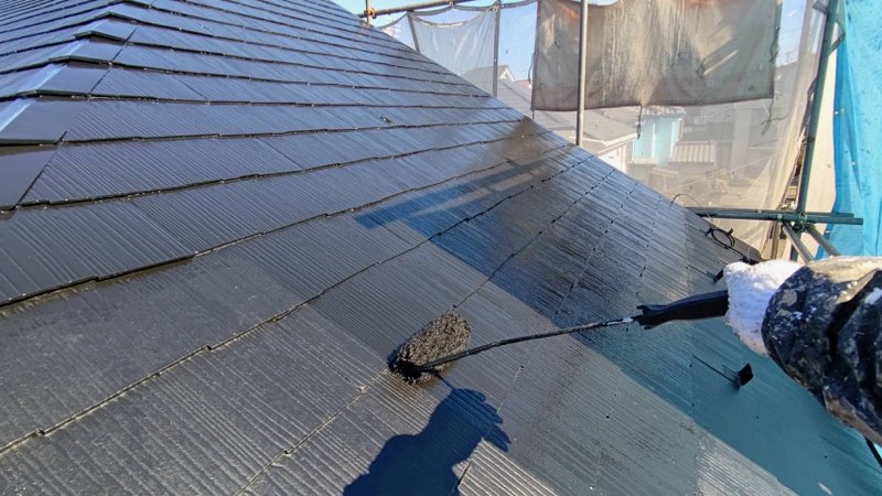 コロニアル屋根 中塗り及び上塗り塗装。