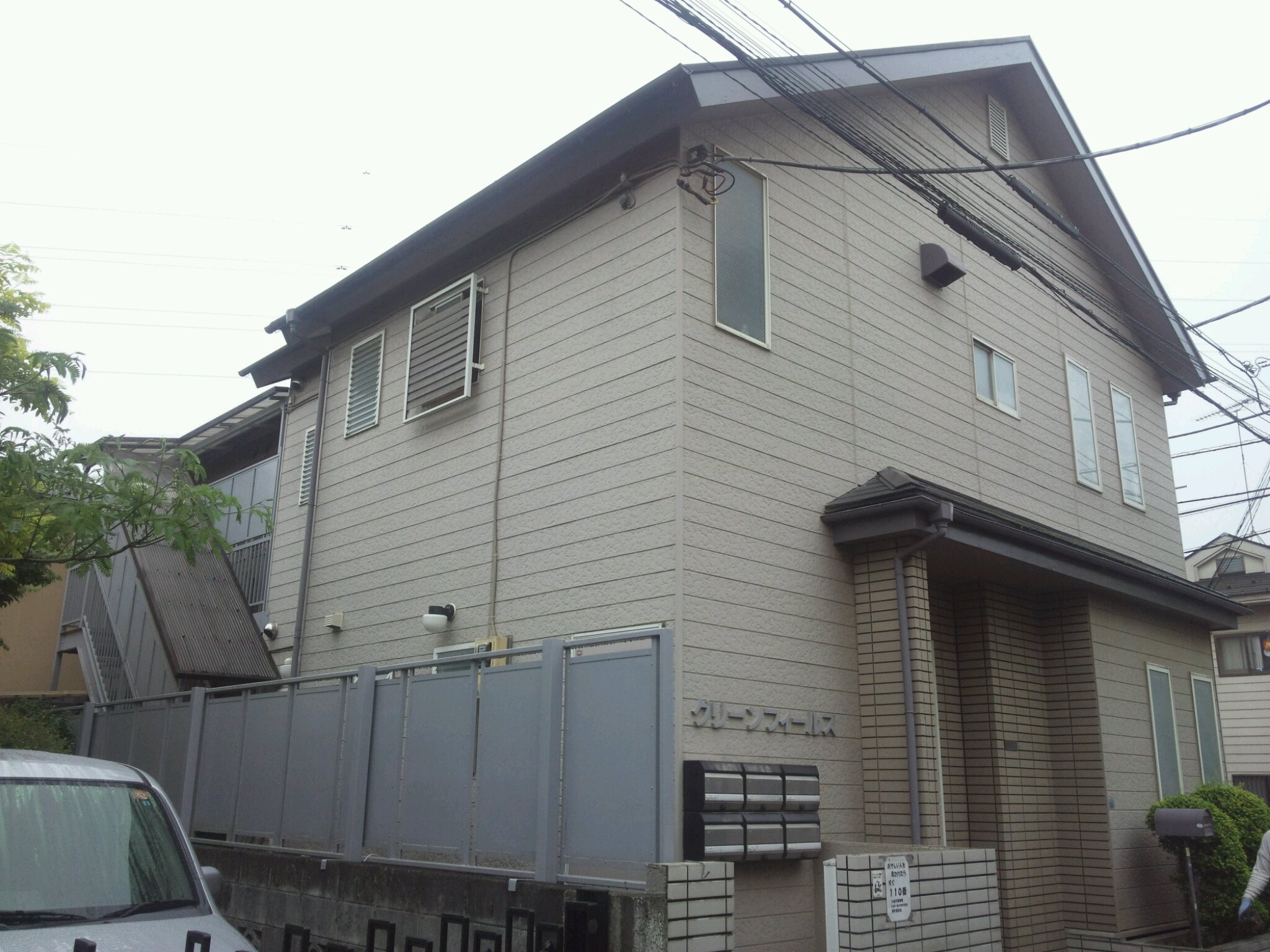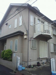 サイディングとコロニアルの建物で、そろそろ色あせが始まりまた、鉄骨部分の腐食で工事の運びとなりました。さいわい、サイディングの目地シールはまだ大丈夫そうでしたので、今回打ち替えはしません。