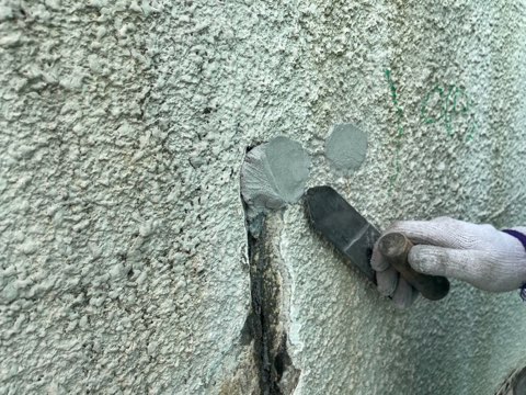 注入工事、爆裂部シール及ぶモルタル塗布工事。
