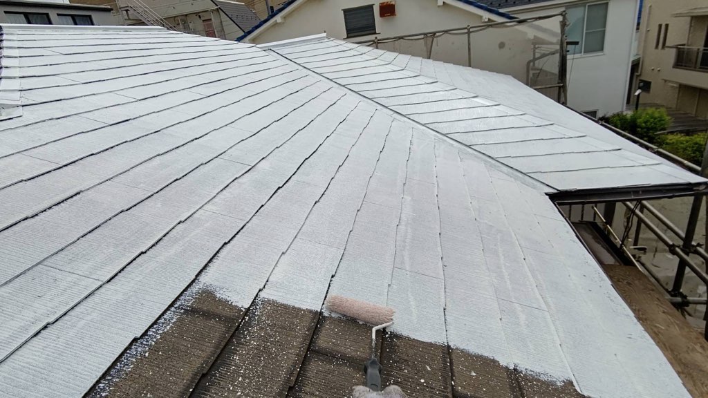 コロニアル屋根 遮熱用プライマー及び中塗り塗装。